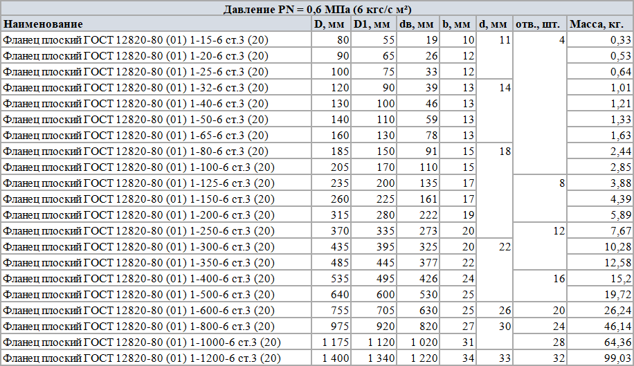 Таблица размеров 3 - Фланец плоский 12820-80